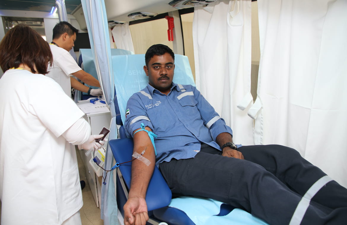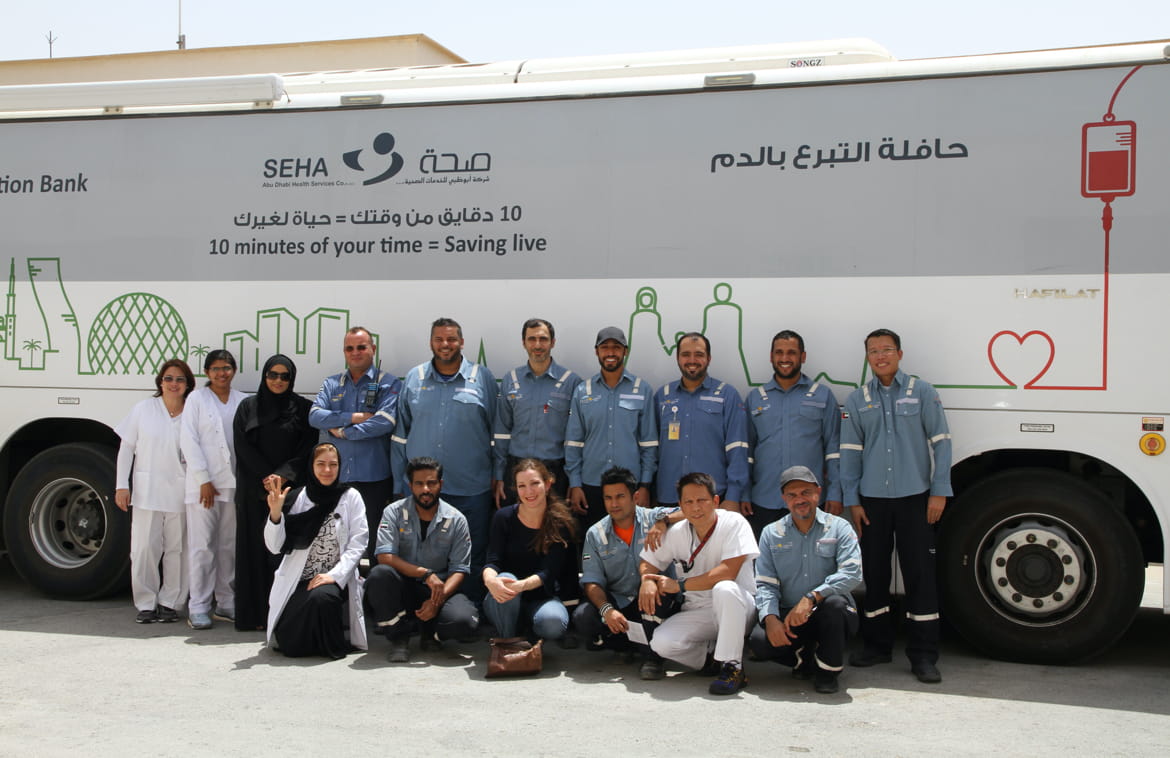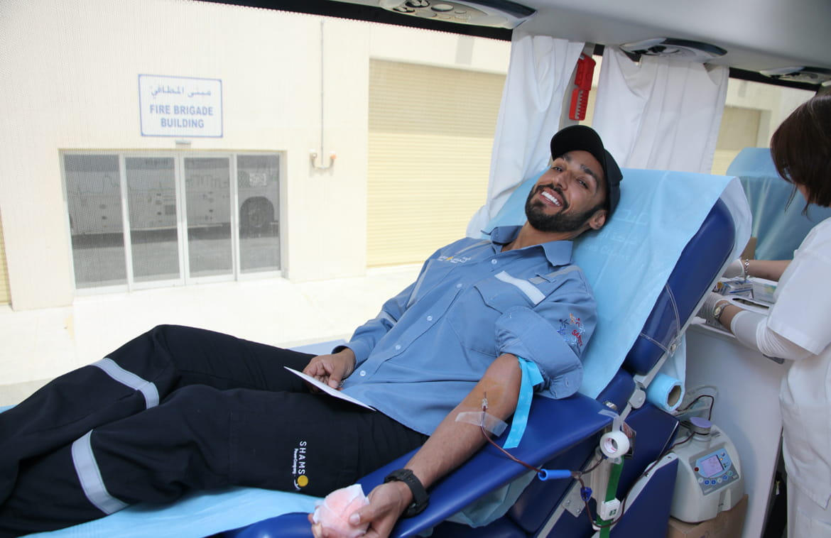 تنظم شركة "شمس" حملة للتبرع بالدم بالتعاون مع هيئة الهلال الأحمر، وذلك عن طريق استقدام حافلة بنك الدم المتنقلة إلى مدينة زايد بهدف توفير الدم للحالات العلاجية.