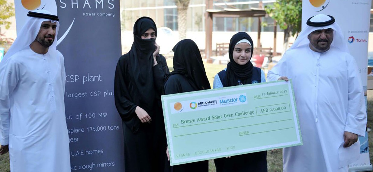 The three winning schools who will be showing off their students’ solar-powered cooking technology at The Festival at Masdar City on January 20-21 are: Qatr Al Nada school from Madinat Zayed came in the 1st and 3rd place with two different teams; Al Baya school from Sila came in the second place.